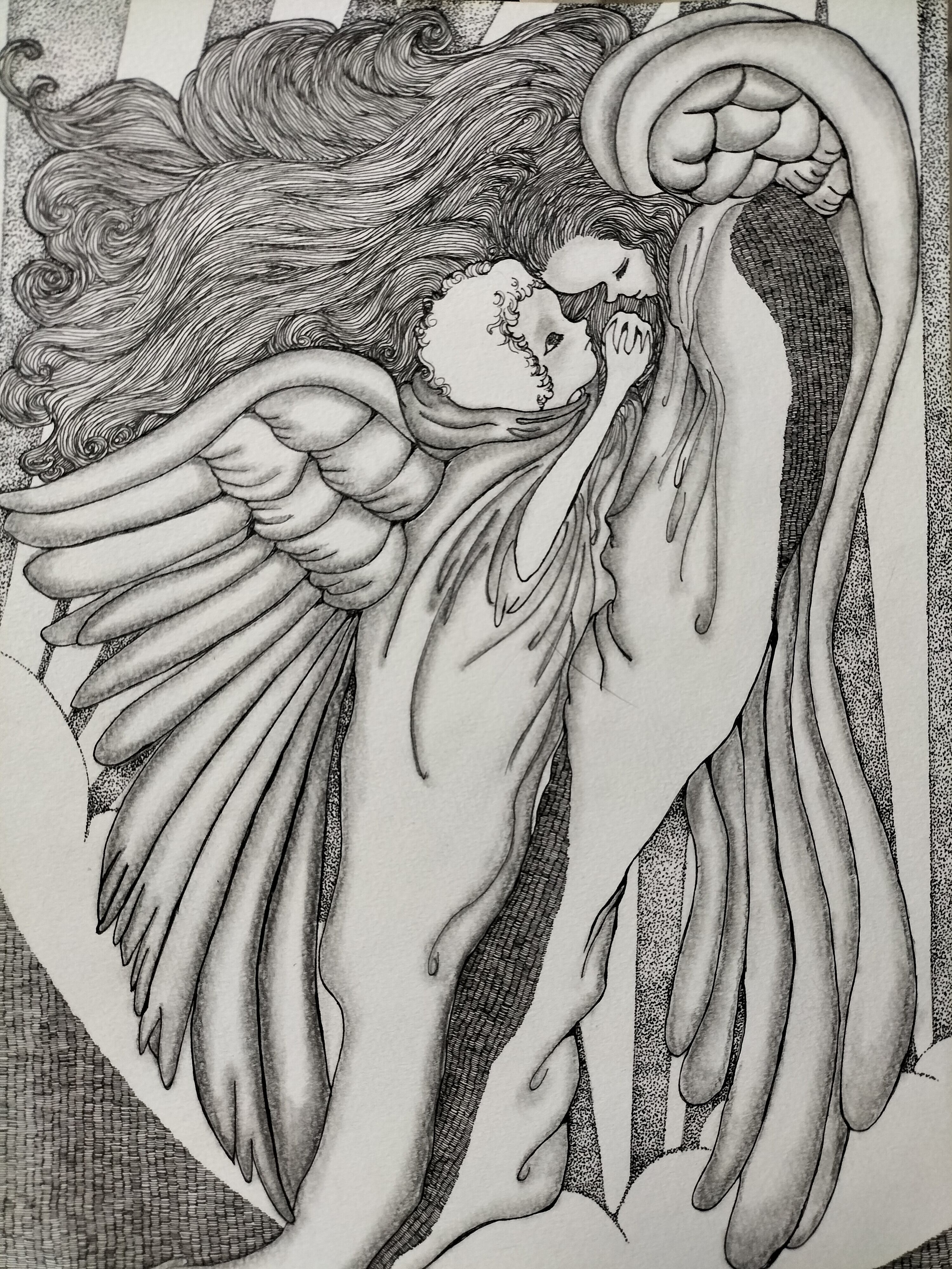 素材:画用紙・ボールペン・鉛筆・綿棒
